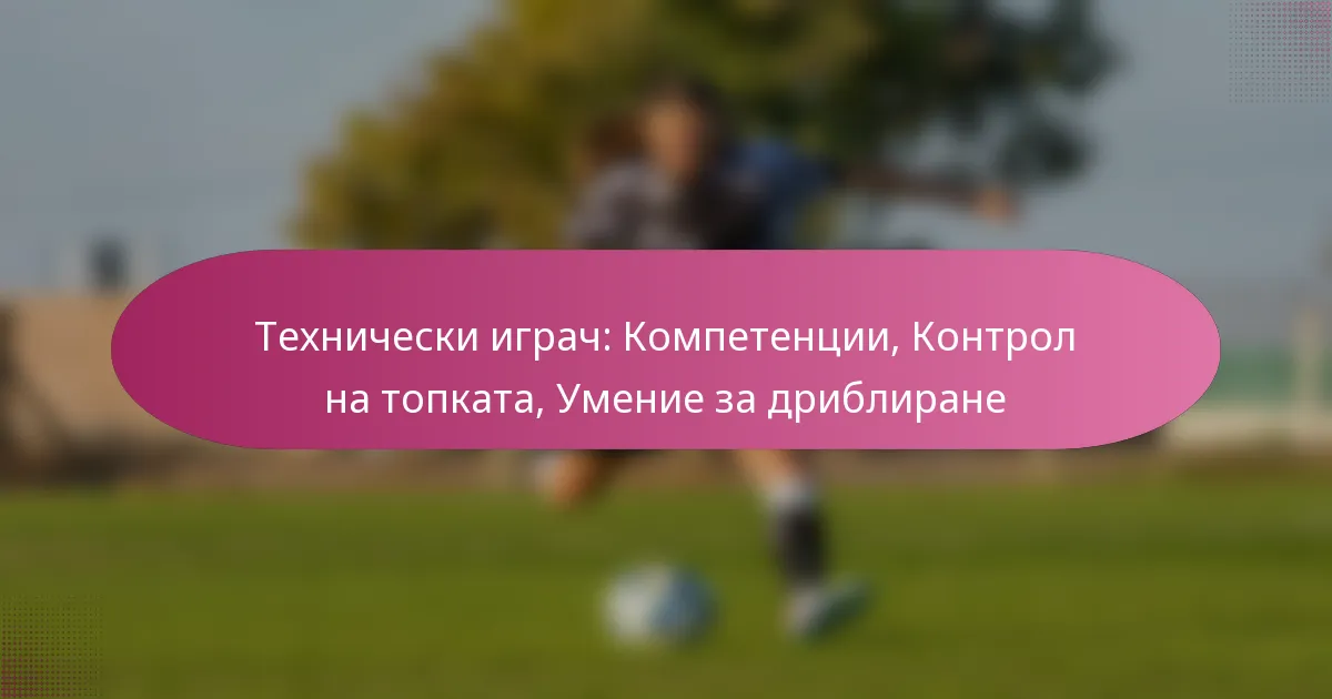 Техническият играч в спорта се характеризира с изключителния си набор от умения, особено в контрола на топката и дриблирането. Тези играчи се отличават в манипулирането на топката с прецизност, което им позволява да се движат между противниците и ефективно да създават възможности за гол.